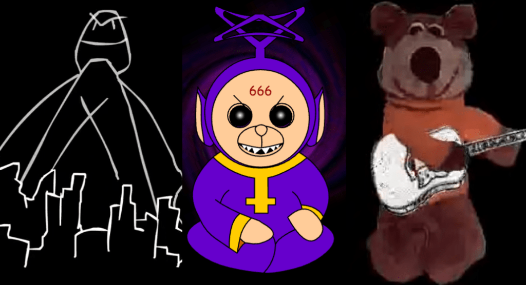 *cw: cartoon violence/gore, NSFW imagery, racist caricature, drugs* TELEBUBBY FUN LAND – [Site Link] – [Partial playthrough on YouTube]