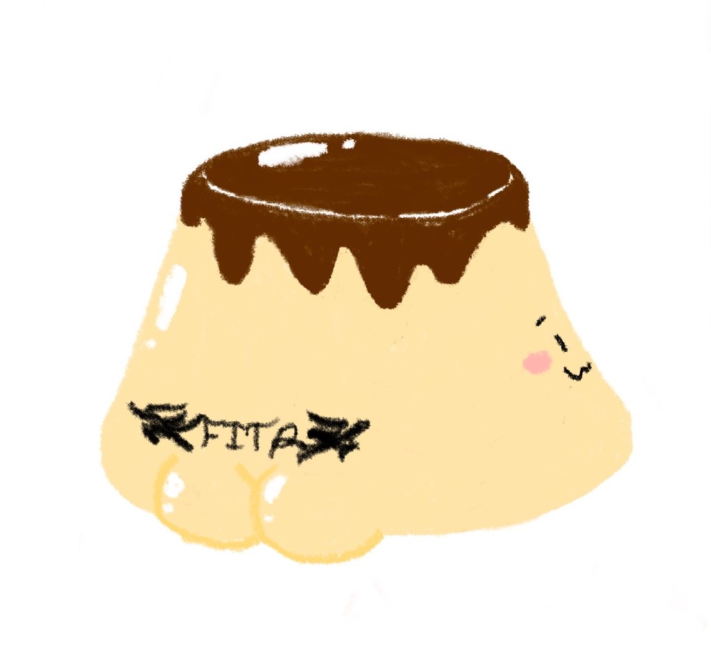 Beautiful fanart of unofficial mascot Pashin The Flan (back view) by Guts:
